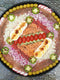Round showpiece platter with assorted herrings arranged in a beautiful circular design for maximum table impact.